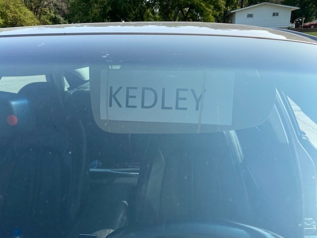Today your student will be bringing home two name plates for your vehicle. All elementary students are receiving them; even if the child typically takes the bus. Please use the rubberbands attached to place one name plate on the visor of the vehicle you may be picking up your elementary child. You will receive two name plates for two vehicles. If you have more than two vehicles that need name plates, please make one or contact Becca Kedley. If you have multiple students at the elementary, you will be receiving multiple name plates; one for each child. However, you do not need to use a different name plate for each child. If you could please add each child's grade level on the name plate it would be appreciated. When you pull up to pick up your child, if you could please put your visor down to display the child's name and grade it will help all staff on duty. We appreciate your patience as we work through this new process.