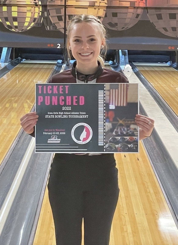 Ashton Giza and Hannah Wisniewski both qualified for the individual state tournament by winning on Monday afternoon. Hannah bowled a 604, while fellow teamate, Jessinda Davenport finished 6th with a 494. Ashton won with a 719 and Austin Gonseth finished 8th with a 570. Both Ashton and Hannah will compete on Tuesday, February 22nd in Waterloo.